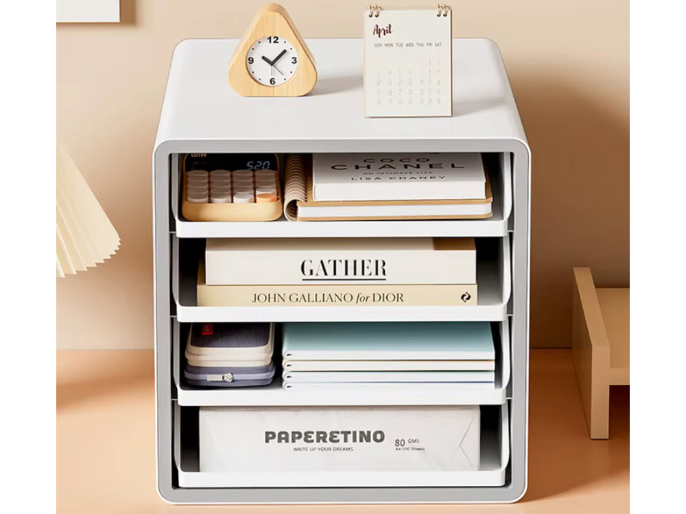Organizer biurowy z 4 pojemnymi szufladami to idealne rozwiązanie, jeśli chcesz utrzymać porządek na biurku i mieć wszystkie najważniejsze rzeczy zawsze pod ręką. Dzięki kompaktowym wymiarom świetnie sprawdzi się zarówno w domowym gabinecie, jak i w miejscu pracy. Każda szuflada bez problemu mieści dokumenty A4, zeszyty, notatniki oraz akcesoria biurowe.