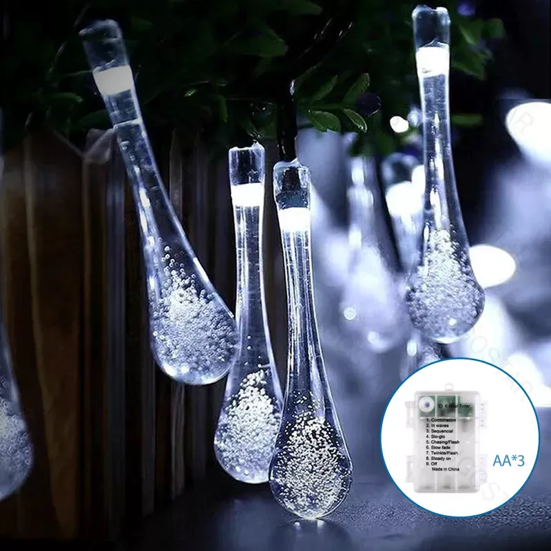 Lampki choinkowe krople deszczu na 3 baterie AA, Zimna biel, 5m 50LED