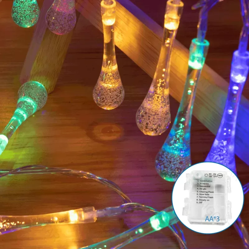 Lampki choinkowea krople deszczu na 3 baterie AA,multikolor 2,5m