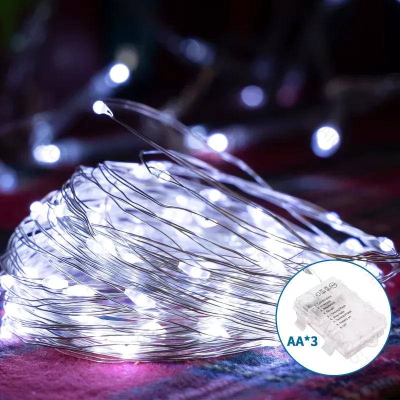 Lampki choinkowe na 3 baterie AA ciepłe z zimnym 100led 5m