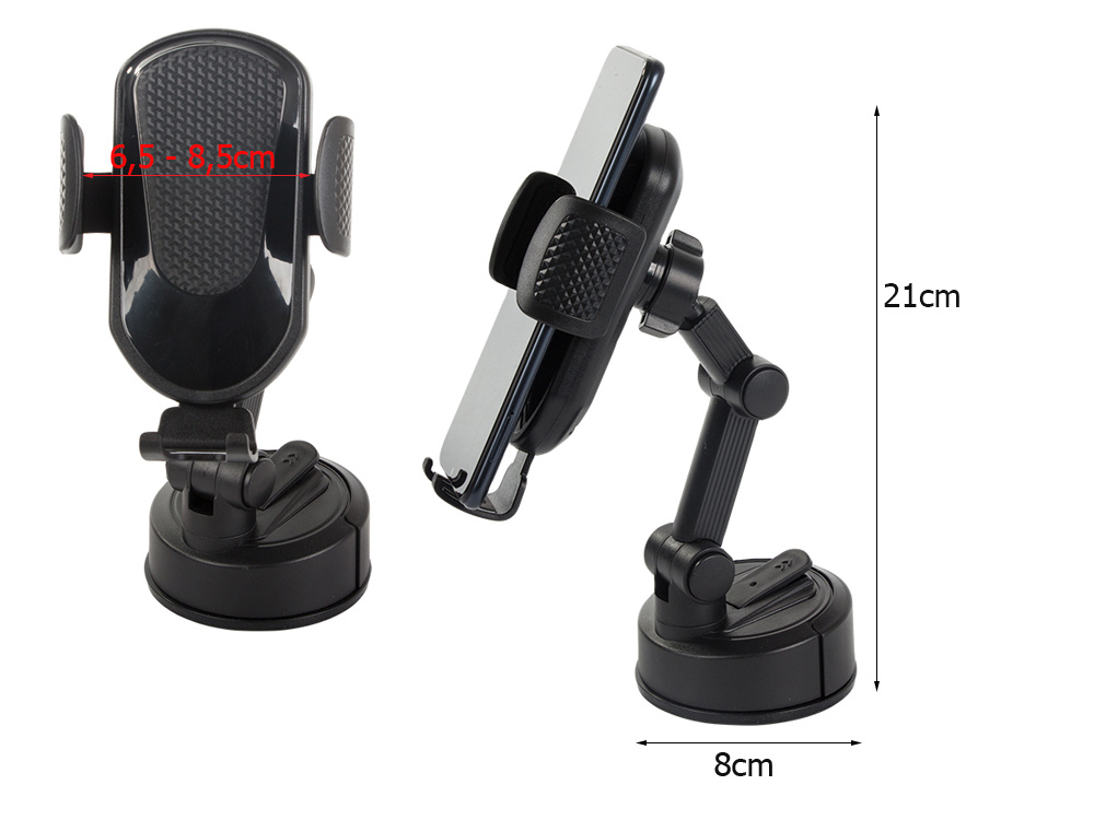Uchwyt można szybko zamontować w różnych miejscach pojazdu – na desce rozdzielczej lub szybie , w zależności od preferencji. Intuicyjny mechanizm zaciskowy pozwala na łatwe wkładanie i wyjmowanie telefonu jedną ręką.