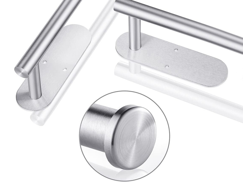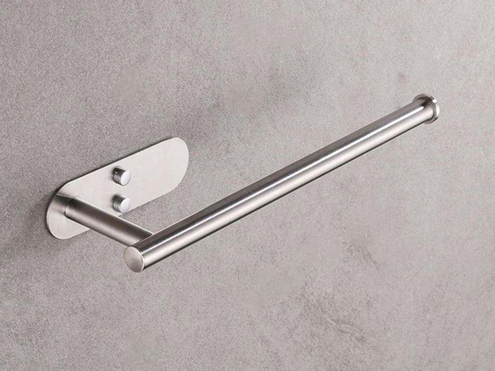 Wysoka jakość użytych materiałów oraz przemyślana konstrukcja zapewniają długotrwałe użytkowanie i wygodę. Możliwość wyboru sposobu montażu daje pełną swobodę instalacji, a uniwersalny rozmiar uchwytu pasuje do większości dostępnych na rynku ręczników papierowych. Elegancki, srebrny kolor i minimalistyczny design sprawiają, że uchwyt nie tylko pełni funkcję praktyczną, ale również estetyczną, harmonijnie wpisując się w różne style aranżacji wnętrz.
