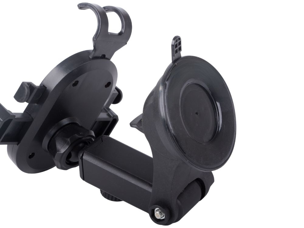 Uchwyt wyposażony jest w mocną przyssawkę z żelową powłoką, która stabilnie trzyma się szyby lub deski rozdzielczej. Montaż jest szybki i beznarzędziowy, a obsługa uchwytu – możliwa jedną ręką, co zwiększa bezpieczeństwo podczas prowadzenia samochodu.