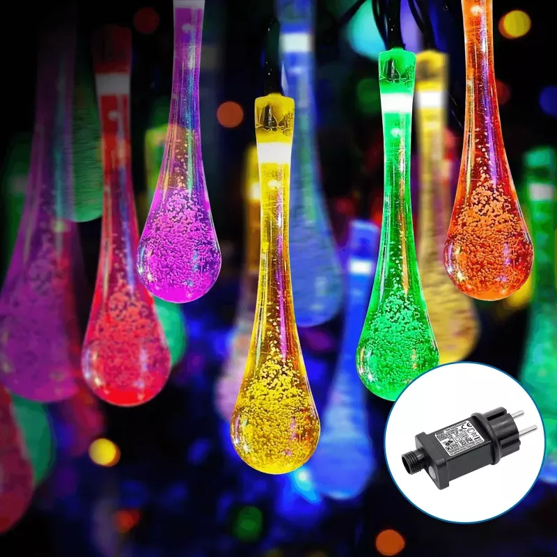 Niskonapięciowe lampki choinkowe 50led w kształcie kropli deszczu Multikolor 5m+3
