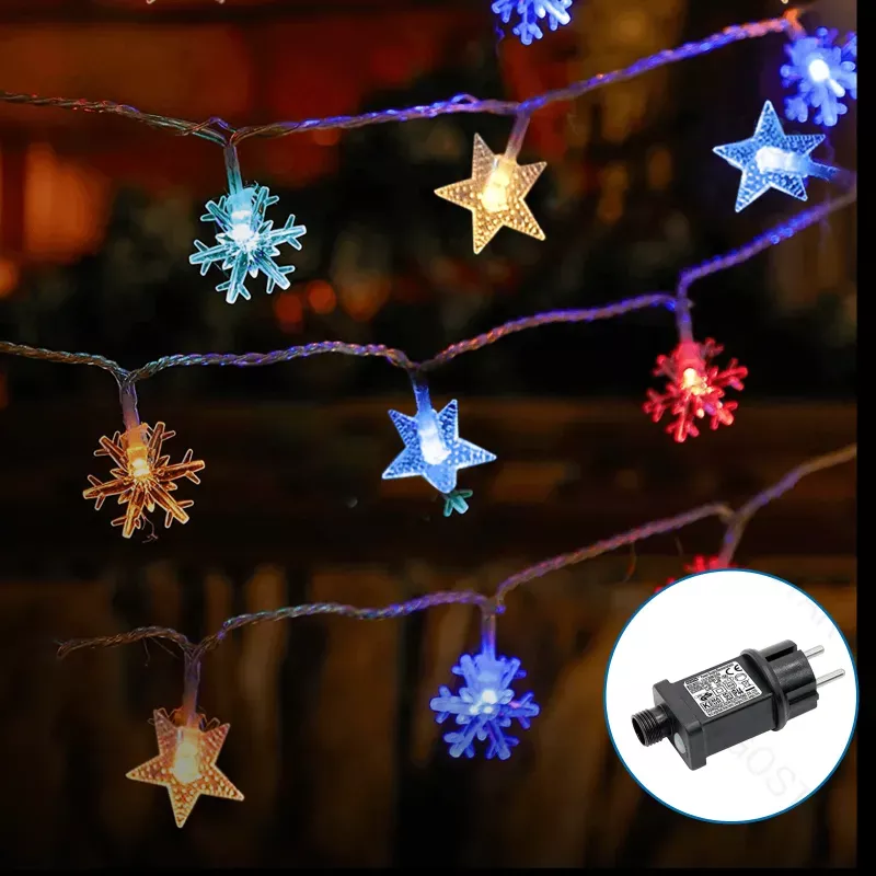 Niskonapięciowe lampki choinkowe w kształcie płatków śniegu i gwiazdek 50led 5m multikolor