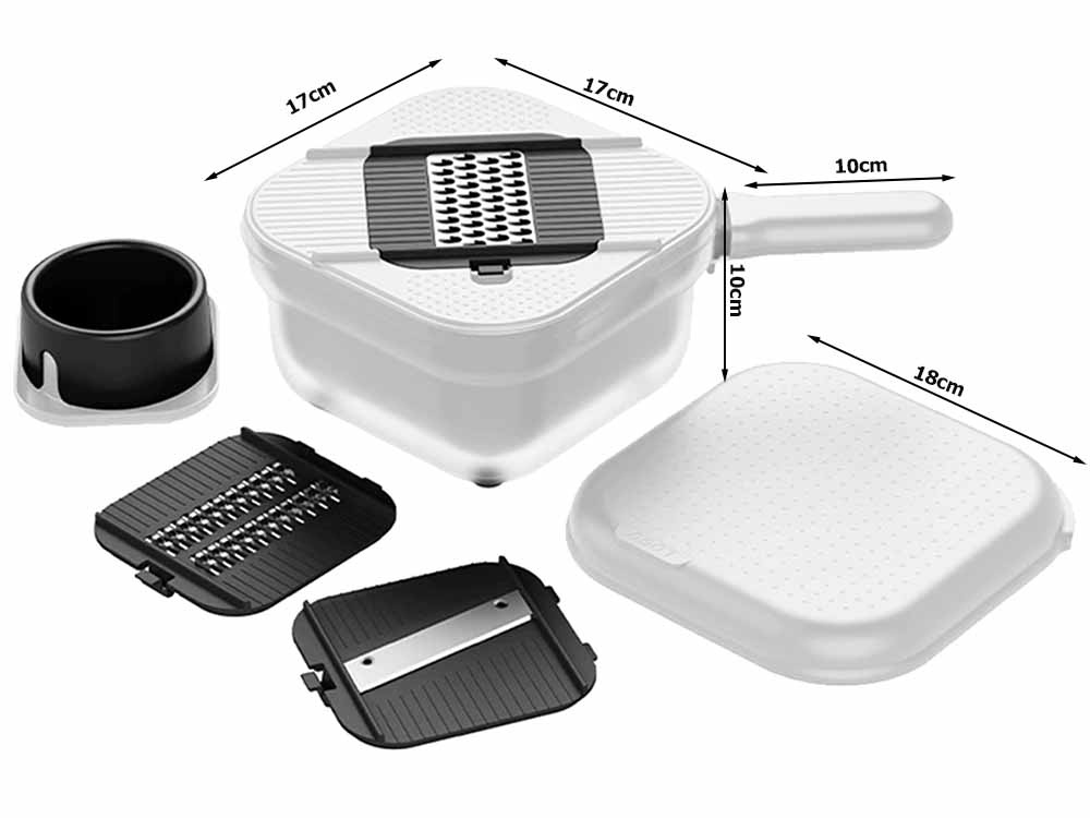 ⭐ Wielofunkcyjna tarka jarzynowa to praktyczne rozwiązanie do codziennego przygotowywania posiłków. Dzięki różnym ostrzom możesz błyskawicznie pokroić warzywa, owoce i wiele innych produktów według własnych potrzeb. Ergonomiczna budowa oraz plastikowy pojemnik z rączką sprawiają, że obsługa urządzenia jest wyjątkowo wygodna i komfortowa. Dodatkowe elementy, takie jak końcówka do krojenia czy cedzak, sprawiają, że produkt zaskakuje wszechstronnością.