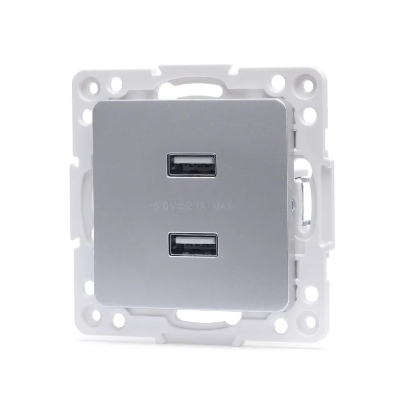 Gniazdo USB podwójne typu niemieckiego/francuskiego Srebrne