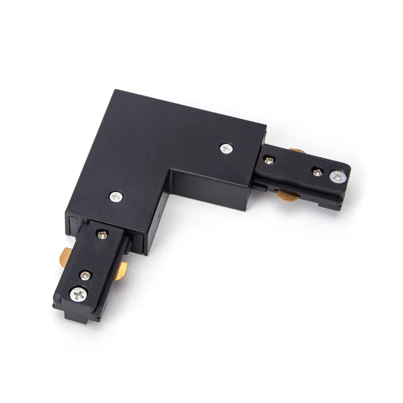 Trzyprzewodowy łącznik do szyn oświetleniowych typu L Czarny
